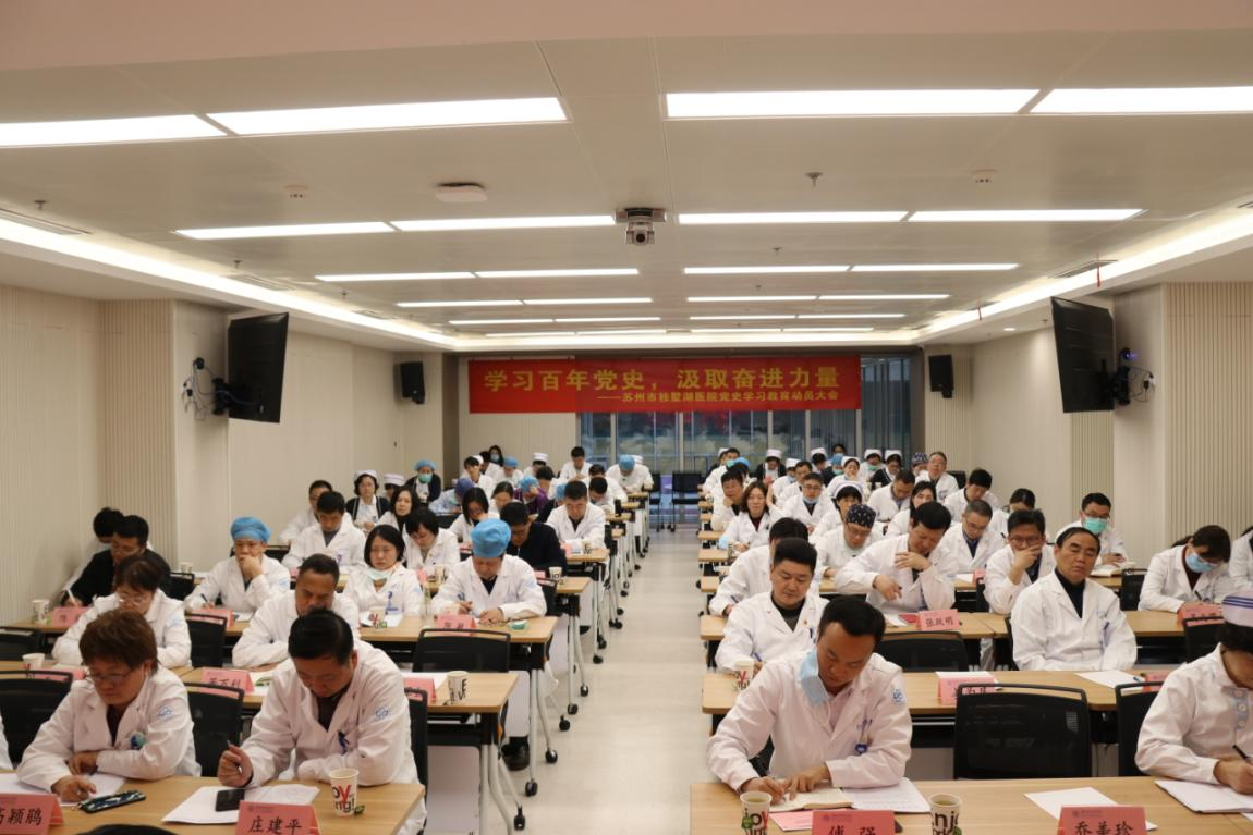 我院始终坚持紧跟党的步伐,以习近平新时代中国特色社会主义思想为指导高标准高质量推动党史学习教育——我院成立中共苏州市独墅湖医院委员会党史学习教育领导小组。通过党史学习教育,激发全院职工不懈工作动力,朝着“综合性、国际化、高水平”的大型三甲创新型医院目标奋进,开创医院建设发展新篇章、新窗口、新标杆,以优异的工作成绩为建党百年献礼!