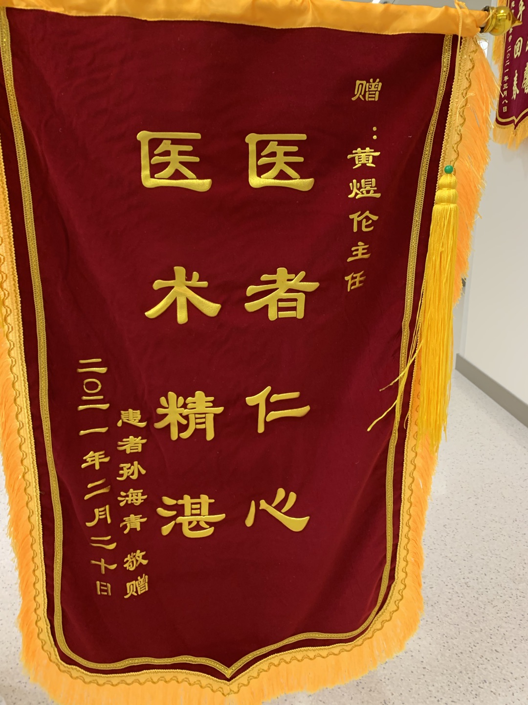 患者孙先生赠送锦旗感谢我院神经外科黄煜伦主任