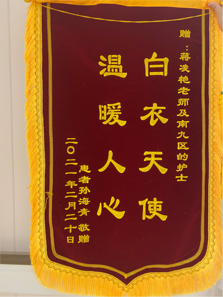 患者孙先生赠送锦旗感谢我院蒋凌艳护士长及南九区全体护士