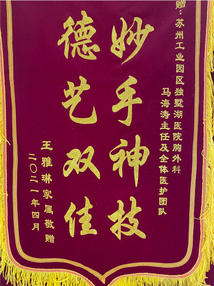 患者王女士家属赠送锦旗感谢我院胸心大血管外科马海涛主任及全体医护团队