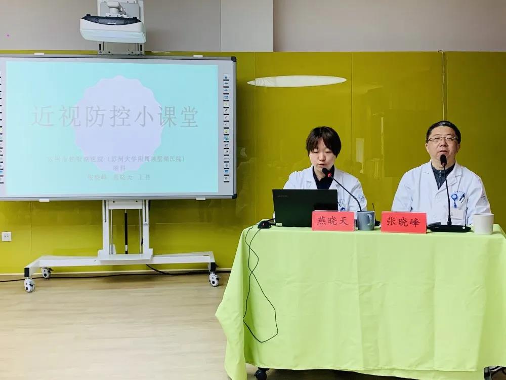 为增强家长对幼儿近视早发现、早干预的意识,2021年4月12日下午,张晓峰主任受苏州工业园区钟园幼儿园程利副园长的邀请,带领苏州市独墅湖医院眼科团队亲临现场,为家长科普近视防控知识,并为幼儿进行现场义诊活动。