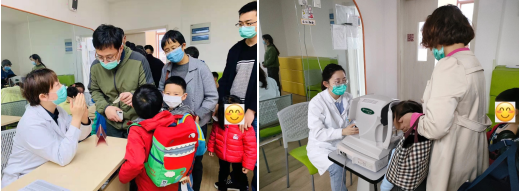 同时,为了更好地服务幼儿与家长,我科燕晓天医师向各位家长普及了儿童视力标准、近视的成因和分类、如何早期发现和治疗少儿近视等知识;我科王芸医师使用电脑验光仪,为有需要的幼儿现场验光、看诊,现场活动氛围热烈。