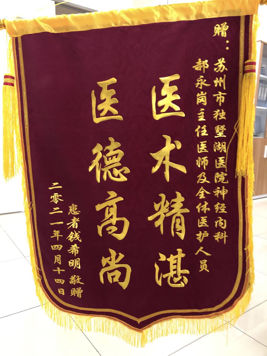 患者钱先生赠送锦旗感谢我院神经内科郝永岗主任医师及全体医护人员