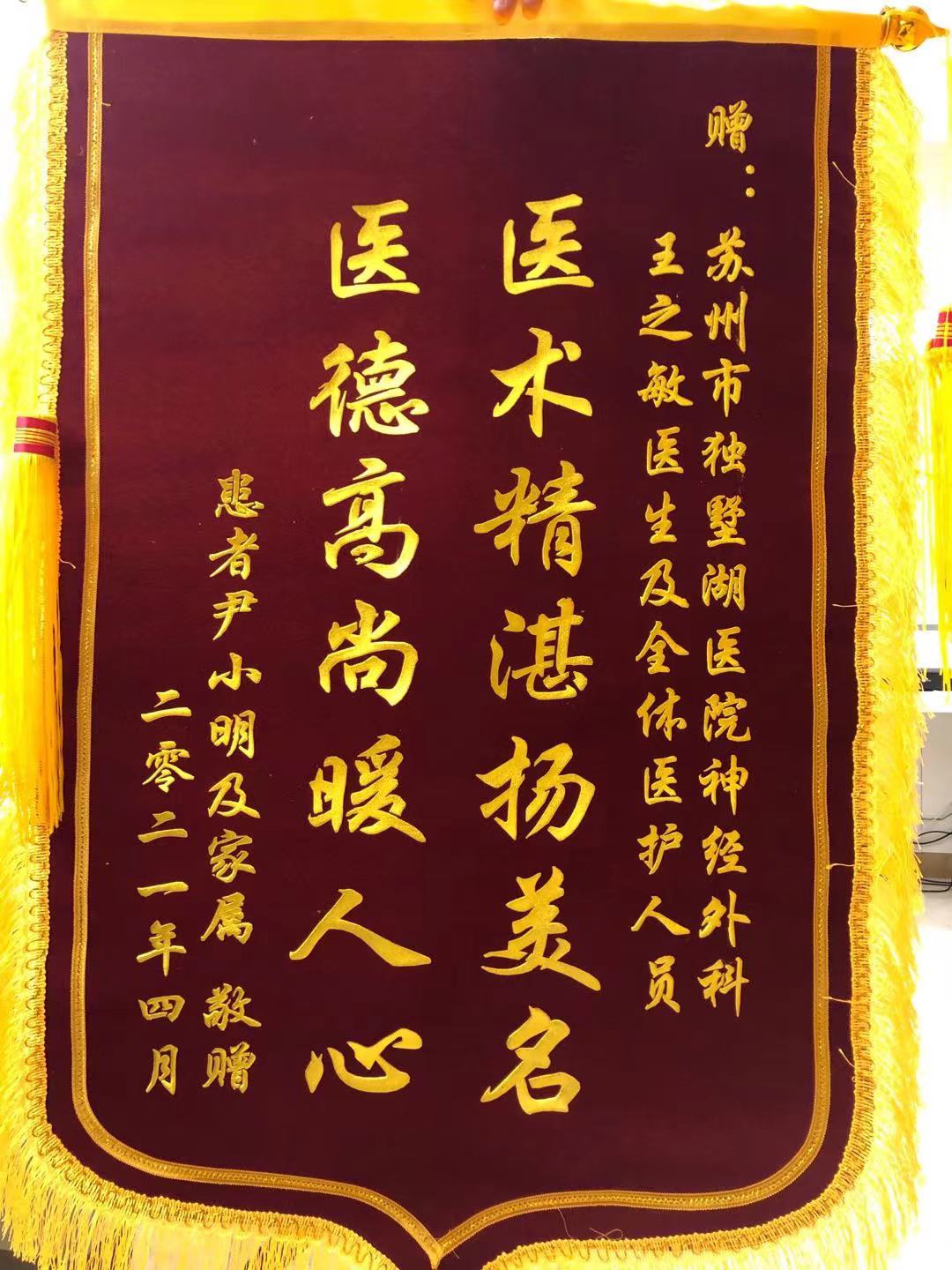 患者尹先生及家属赠送锦旗感谢我院神经外科王之敏医生及全体医护人员