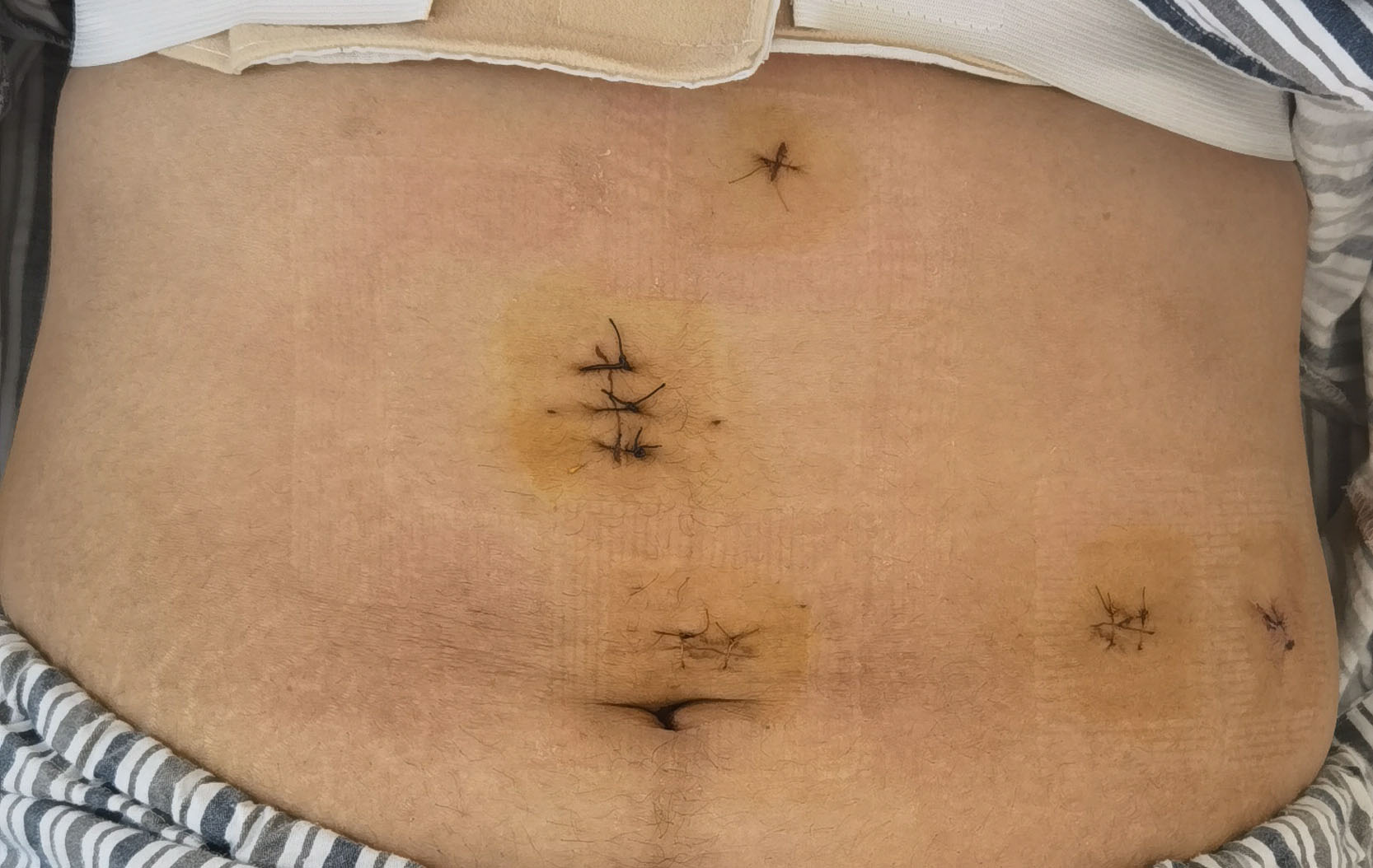 普外科卢杏生主任仔细评估患者病情及影像资料,充分考虑到季女士年纪尚轻,对手术刀疤恢复要求较高等因素,最终决定采取创伤小、恢复快、并发症相对更少的腹腔镜下脾切除术。腹腔镜进入体内后,映入眼帘的是一片积血,季女士脾脏裂口活动性出血影响了手术操作视野,增加了微创手术的困难。