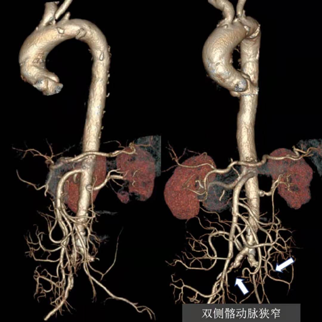 张大爷前不久,因为胸痛至苏州市独墅湖医院(苏州大学附属独墅湖医院)就诊行冠脉疾病治疗,住院期间完善CT血管检查,一查发现他的血管病变不得了。有主动脉弓穿透性溃疡、左侧锁骨下动脉起始段、双侧髂动脉闭塞(左侧重);张大爷诉说自己多年头晕不适、左下肢乏力,去多家医院检查左右上肢血压不一致,相差约40mmhg,左腕部也摸不到血管跳动。但自己一直没有重视,并且张大爷是个“老烟枪”,每天一包多,有糖尿病及高血压病史多年,没想到自己这么多血管出现了问题。