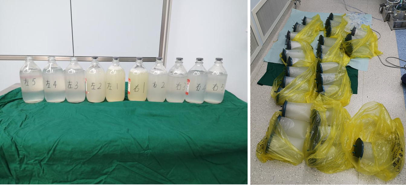 在医院多学科和张伟主任的鼎力支持下,蒋军红主任团队顺利完成了双肺同时大容量全肺灌洗术。手术期间为患者行右肺肺泡灌洗,总计进45000mL温生理盐水,直至液体清澈,共回收41741肺泡灌洗液,回收率为92.8%,后转为呼吸机双肺通气,保持生命体征平稳;再行左肺肺泡灌洗温生理盐水45000mL,直至回收液体清澈,共回收43551mL肺泡灌洗液,回收率为96.8%。手术历时5个小时圆满结束。患者后转至我院重症医学科,进行围手术期治疗。现患者已恢复出院,步行回家。经过此次成功的手术治疗,患者向医护人员连连称谢,并感叹“就像‘换’了肺一样”。