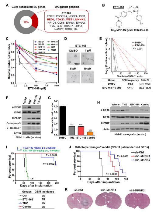 图3.Analysis of GBM-enriched SEs uncovers actionable drug targets.