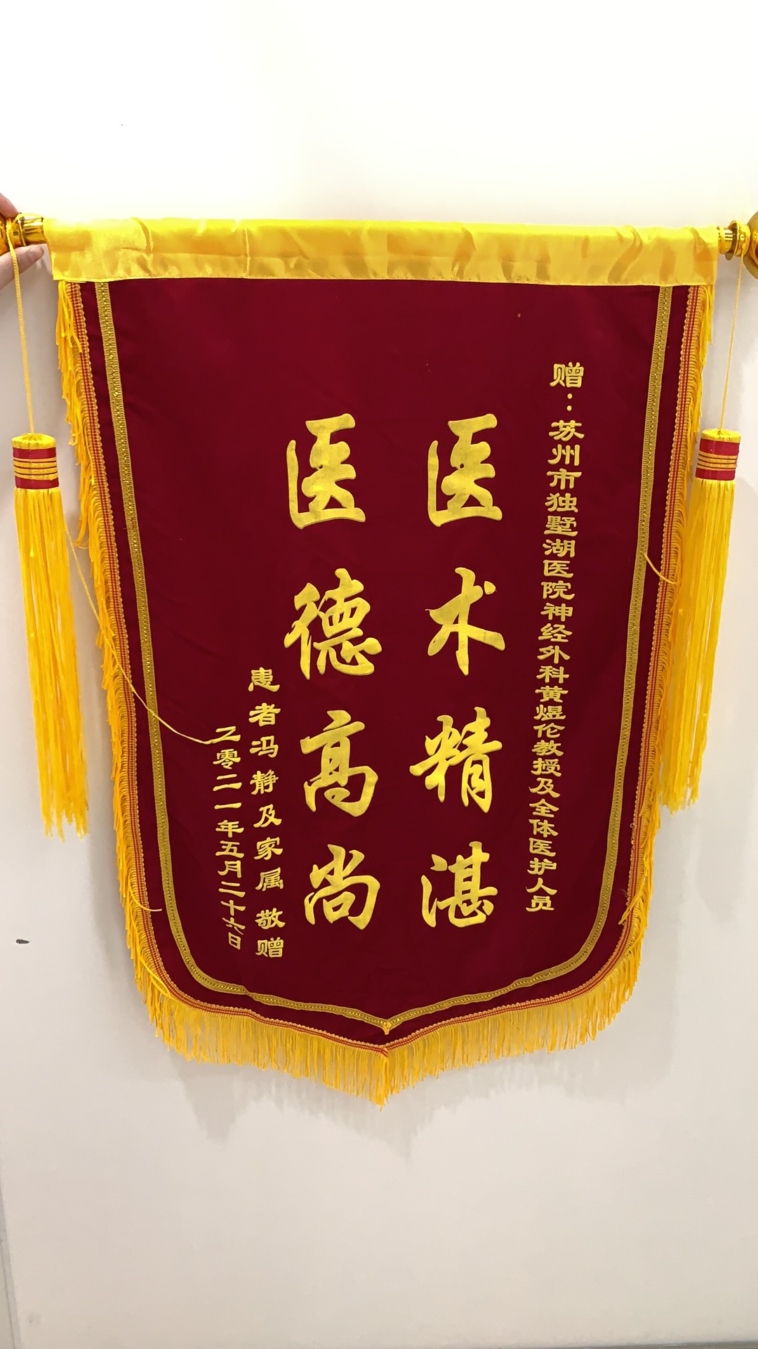 患者冯女士及其家属赠送锦旗感谢我院神经外科黄煜伦教授及全体医护人员