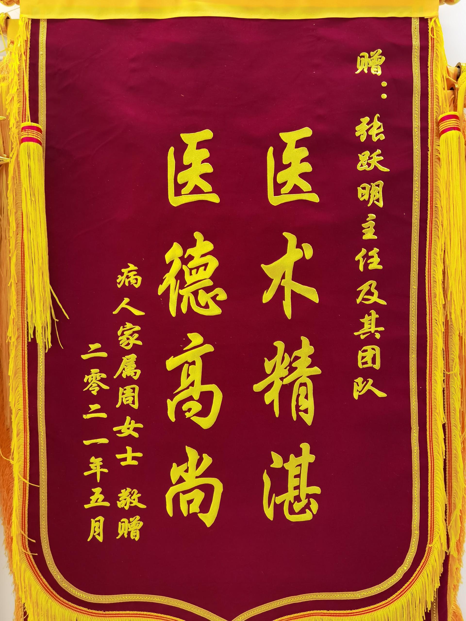 患者家属周女士赠送锦旗感谢我院妇产科张跃明主任及其团队