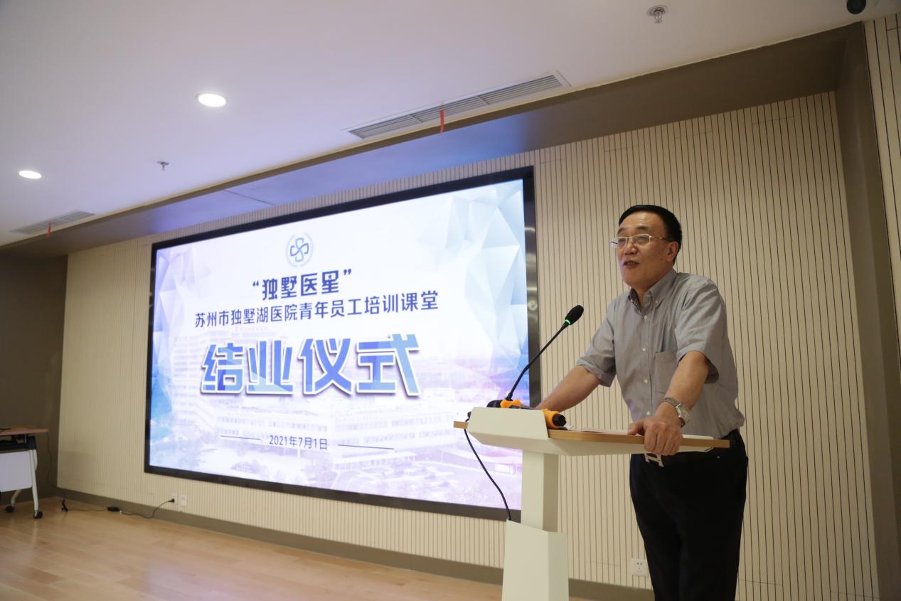 为庆祝中国共产党成立100周年,激励青年员工用奋斗铸就青春芳华,7月1日下午,苏州市独墅湖医院举办第一期“独墅医星”青年员工培训班结业仪式。园区组织部副部长张伟、社会事业局副局长姚青受邀出席本次结业仪式。我院党委书记、院长侯建全,党委副书记、财务总监郭秀娟,党政办公室主任傅强参加了结业仪式。结业仪式由党委副书记郭秀娟主持。