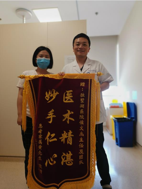 患者家属黄先生赠送锦旗感谢我院妇产科侯文杰主任及团队