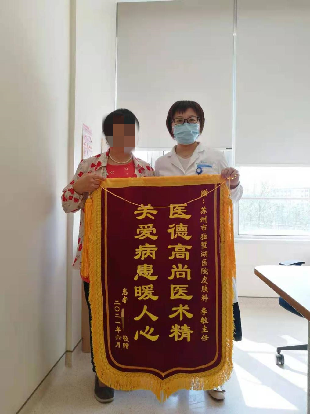 李主任果断决定为病人实施手术,于端午节当天组织召集相关医护人员加班为患者进行了手术。整个手术过程仅用时一小时,便完成了对肿瘤的扩大切除和皮瓣修复。在后续的住院治疗中,医护人员也耐心仔细地为病患提供服务,治疗过程高效且人性化。手术后第三天,患者顺利出院,并为李主任送上了锦旗以表示感激之情。患者表示,正因为李主任的及时诊治,才为她争取了最佳治疗时机,避免了悲剧的发生。