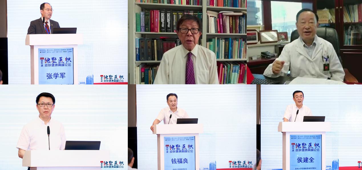 大会开幕式由中日友好医院副院长崔勇教授主持。首届独墅湖皮肤健康论坛主席、中国医学装备协会皮肤病与皮肤美容分会主任委员张学军教授,中国工程院陈洪铎院士和廖万清院士先后致辞,高度肯定了本次论坛的前沿性和重要性,指出靶向药物未来在皮肤科将扮演重要角色,并探讨靶向药物研究和诊疗进展对于我国皮肤科的基础研究和临床诊疗必将起到积极推动作用。苏州工业园区社会事业党委、社会事业局局长顾三强,苏州大学科技处处长钱福良和苏州市独墅湖医院(苏州大学附属独墅湖医院)党委书记、院长侯建全教授致辞,分别表达了对本次论坛的高度重视和支持,表示本次论坛必将是高水平、高成效的论坛,希望通过本次论坛的举办,有效提升苏州皮肤临床医学水平,也希望未来独墅湖医院可以得到全国皮肤科同道更多的关注和支持,打造出“独墅医帜”皮肤健康品牌会议。