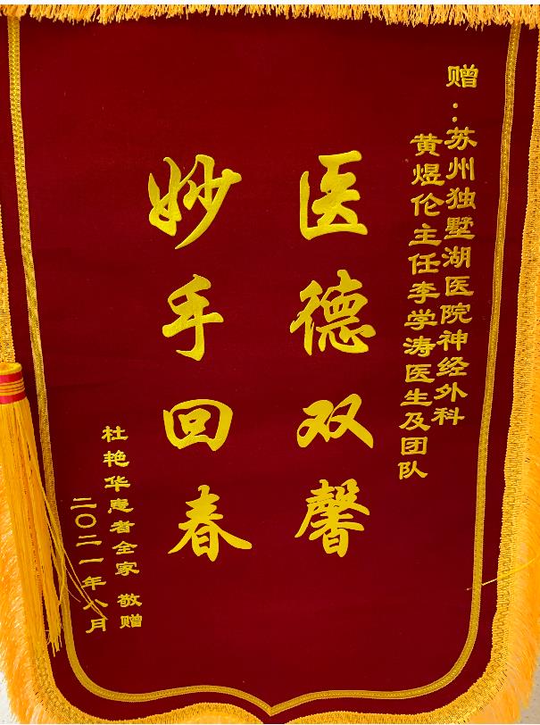 患者杜女士全家赠送锦旗感谢我院神经外科李学涛医生及团队