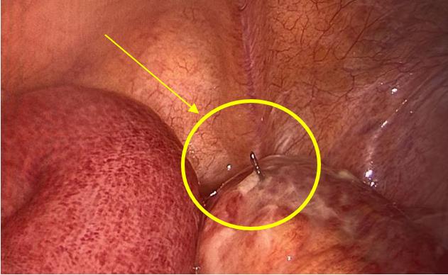 该名患者年纪较大,因为牙齿不好,一周前吃枣时没有吐枣核,没想到小小的一颗枣核竟给她带来了大麻烦。吃完枣后,患者一直感觉腹部疼痛,起初因为疼痛并不明显,患者便没有在意。几天来,随着腹痛愈演愈烈,到达难以忍受的程度,这时患者才来到我院急诊就诊。在做完腹部CT后,医生发现患者腹腔内出现了游离气体,这是消化道穿孔的典型影像学表现,于是立即联系普外科会诊。