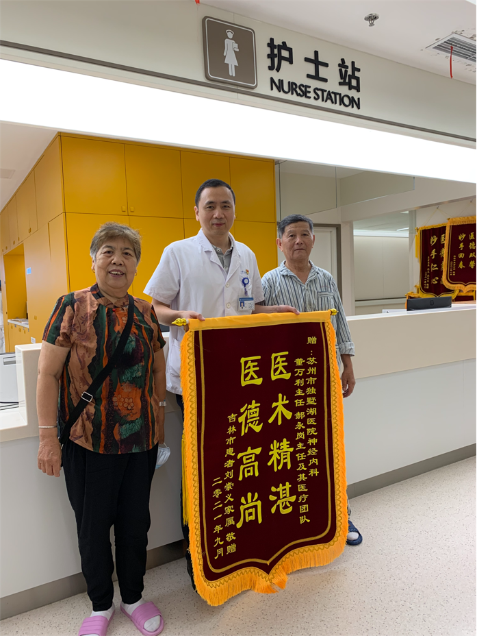 患者刘先生家属赠送锦旗感谢我院神经内科董万利主任、郝永岗副主任及其医疗团队