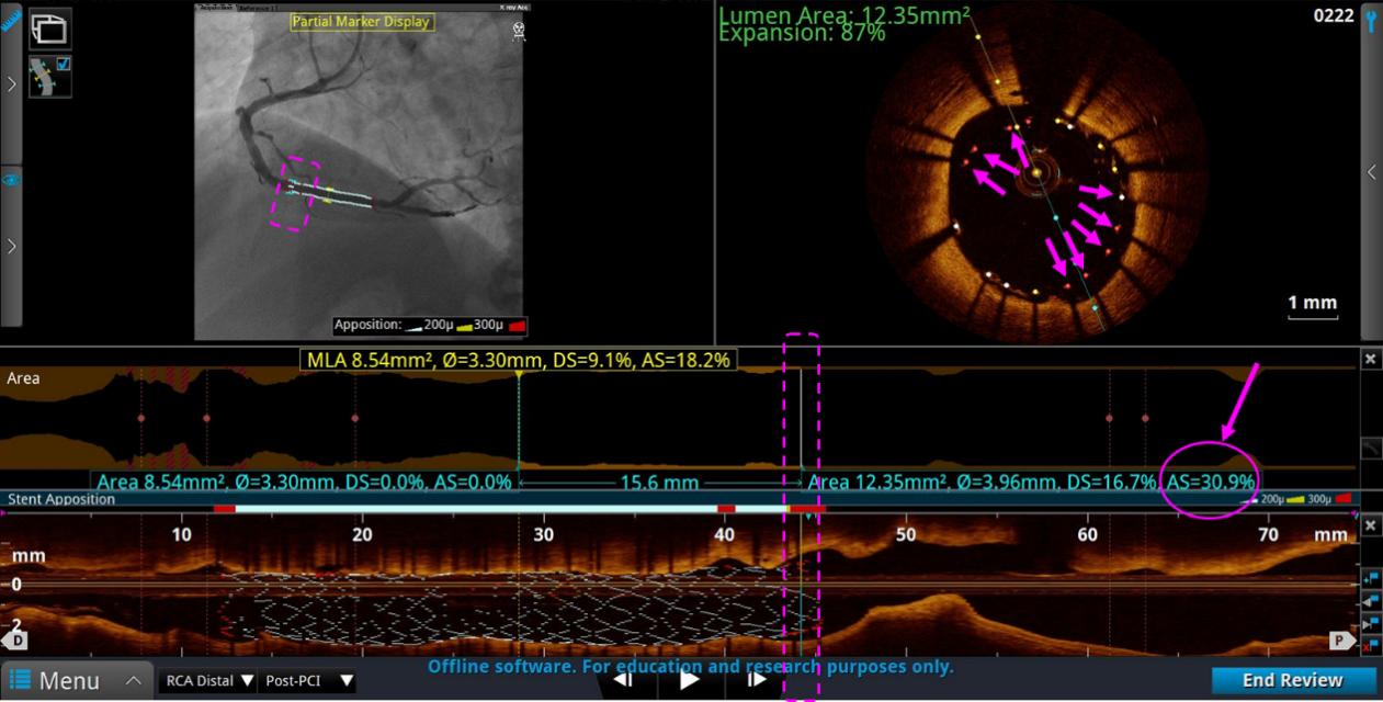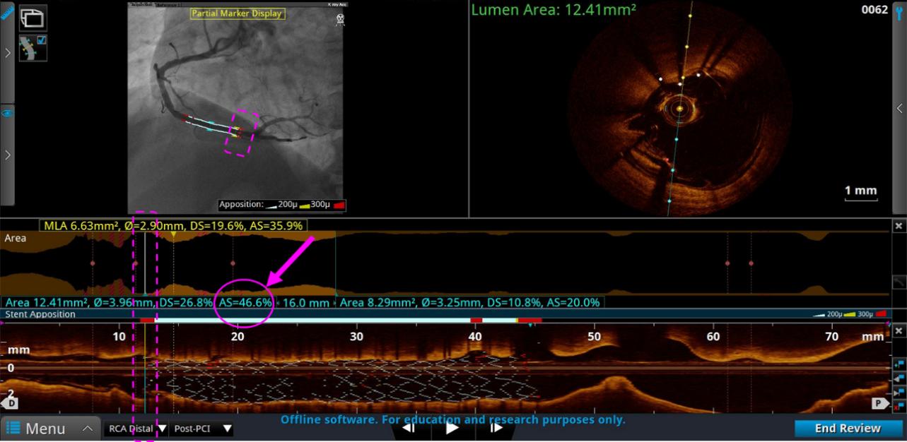 远端评估:支架远端边缘如果AS(面积狭窄率)≥20%,则需要进一步扩张处理。