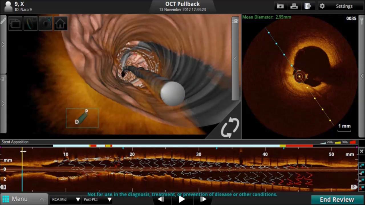 此次装机的“Optis Mobile System——多导管室自由移动式光学干涉断层成像系统是目前最新一代OCT,较传统的OCT设备主要有三大优势: