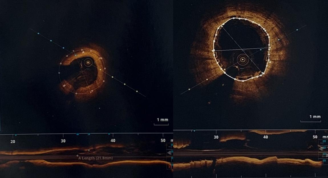 1、Angio-OCT同步定位病变,精准指导支架置入。