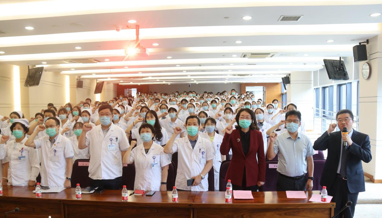 随后,全体新职工在周亚峰副院长的带领下肃穆宣誓,许下立志为人类健康事业奋斗终生的庄重誓言。