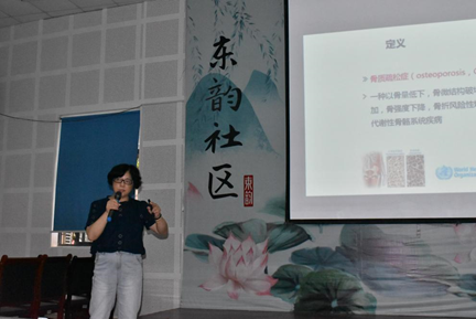 接着王洁主任全程用苏州话讲解了骨质疏松的高危因素、高危人群、自我管理等,强调了预防在于自我管理,特别提醒了老年人们要注意抗骨质疏松药物治疗、生活方式管理、评估及监测、功能锻炼等细节。轻松的氛围、通俗易懂的健康讲座拉近了与居民们的距离,进一步普及了骨质疏松预防知识,增强了大家的防治意识,把骨医人的关爱真正送到了居民身边。