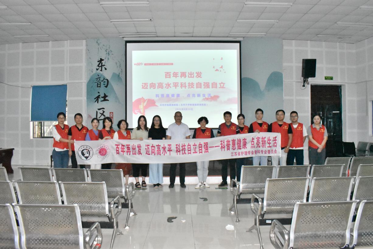 为积极响应中华护理学会关于开展主题为“百年再出发,迈向高水平科技自立自强——科普惠健康,点亮新生活”2021年全国科普日活动,聚焦“学党史、悟初心、践行动、开新局”,苏州市独墅湖医院(苏州大学附属独墅湖医院)护理部和骨科医护团队在护理部王洁主任和骨科何罕亮副主任医师的组织、带领下,于916日深入社区,面向群众,以“预防骨质疏松”为主题开展了一系列科普活动。