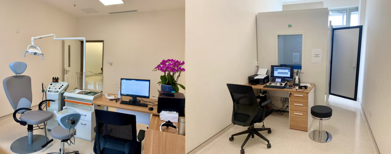 (左:德国多功能综合诊疗台;右:丹麦国际听力设备)