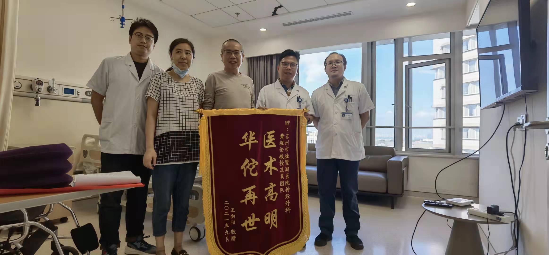 患者王先生赠送锦旗感谢我院神经外科黄煜伦教授及其团队