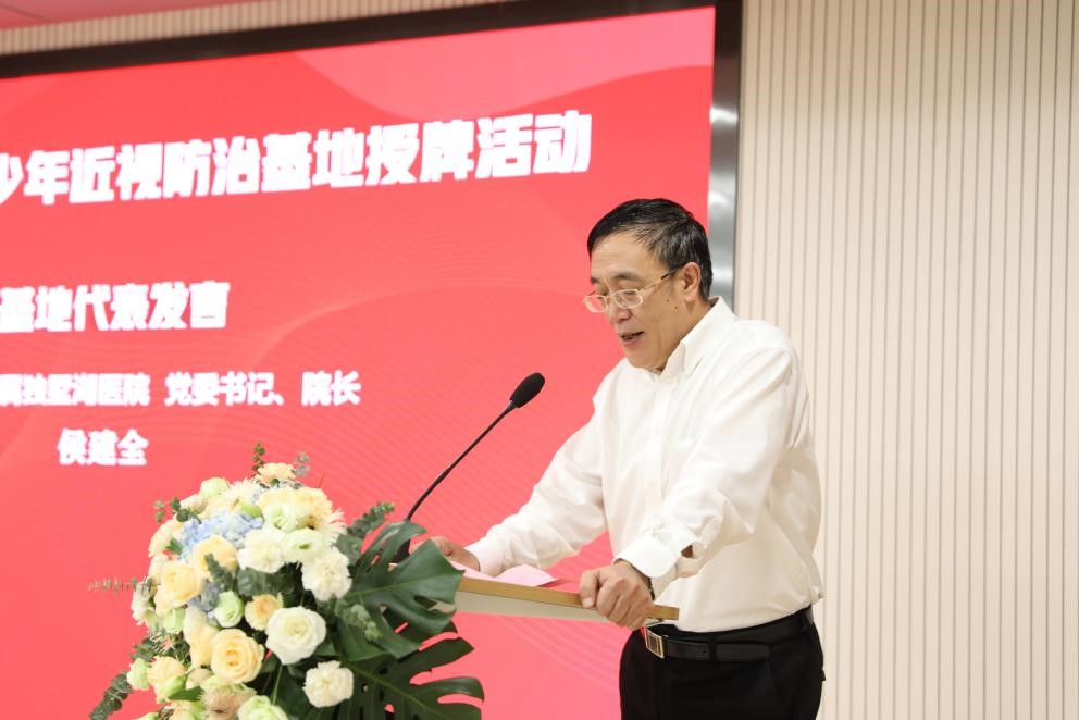 我院党委书记、院长侯建全作为基地代表进行了发言。侯院长介绍了独墅湖医院的运行情况,表示眼科是医院重点打造的科室之一。医院作为苏州市儿童青少年近视防治基地之一,将以基地挂牌为契机,充分发挥专业技术优势,切实做好“基地-社区-学校”联防机制建设。独墅湖医院深信,群众有需求、医院有技术、政府有支撑,就一定能建设好基地,全院也将全力把苏州市儿童青少年近视防治基地打造为全省乃至全国示范模板。