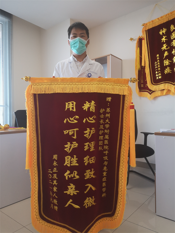 患者周先生及家属赠送锦旗感谢我院呼吸与危重症医学科护理团队