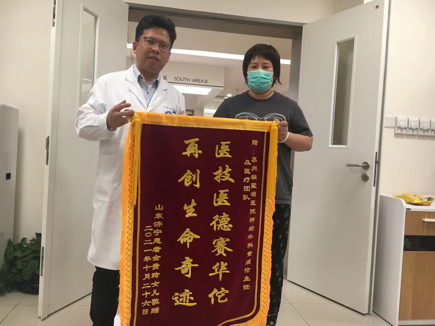 患者金女士及家属赠送锦旗感谢我院神经外科黄煜伦主任团队