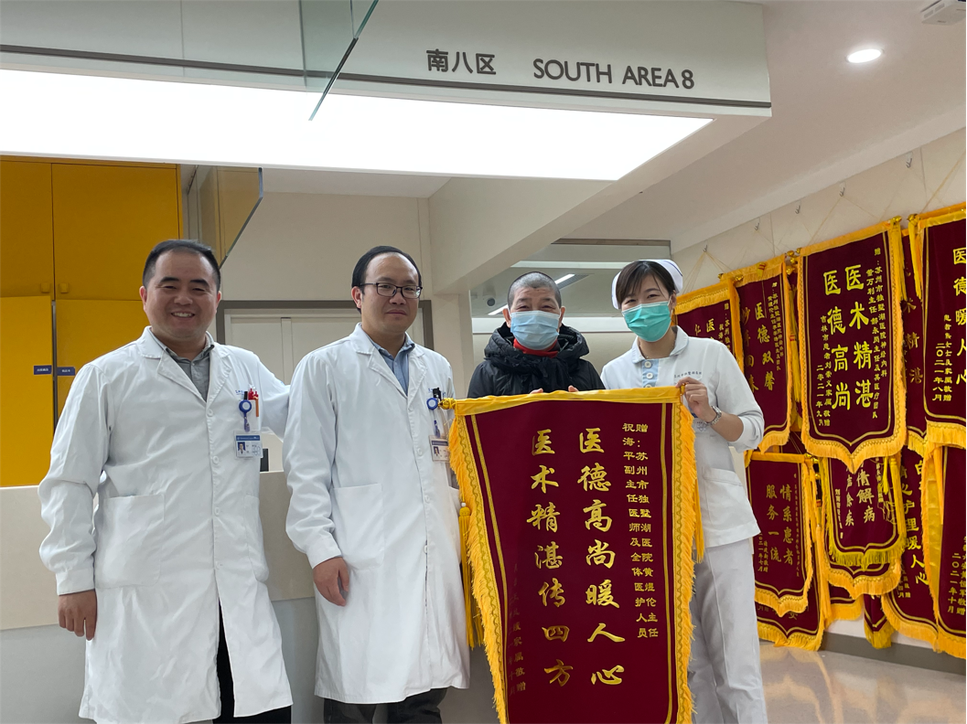 患者王女士赠送锦旗感谢我院神经外科黄煜伦主任、祝海平副主任医师团队
