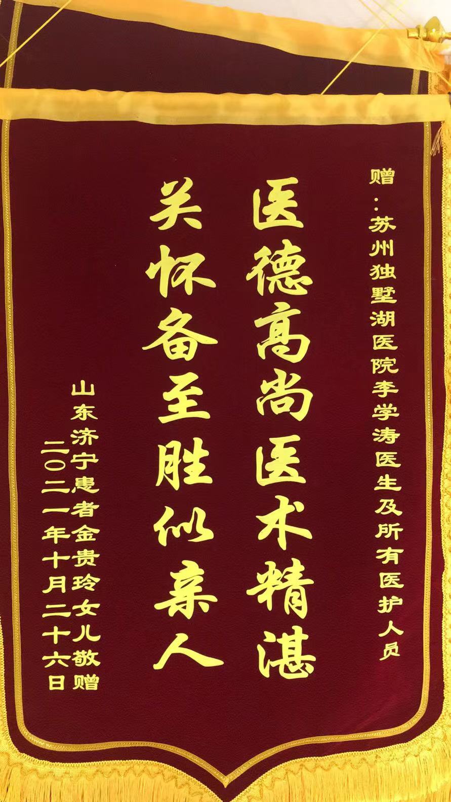 患者金女士赠送锦旗感谢我院李学涛医生及全体医护人员