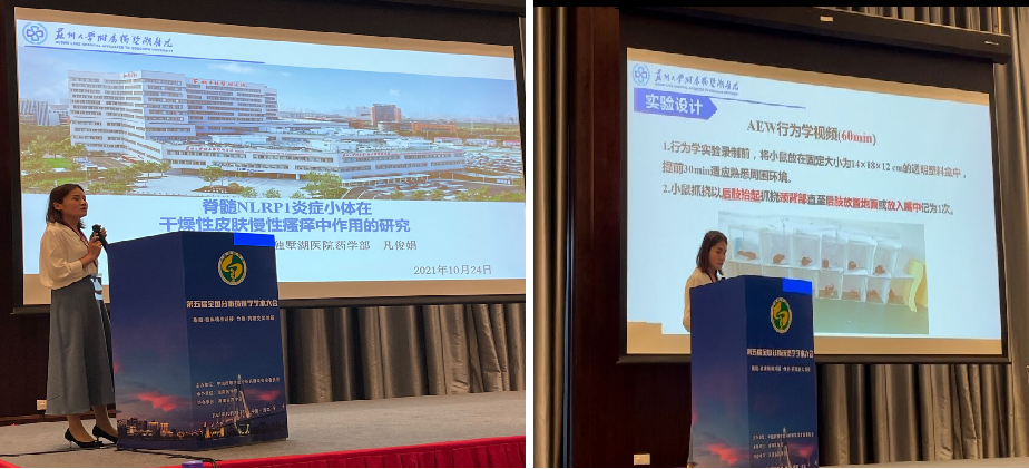 苏州市独墅湖医院(苏州大学附属独墅湖医院)药学部凡俊娟受邀在检测新方法和新技术分会场以《脊髓NLRP1炎症小体在干燥性皮肤慢性瘙痒中作用的研究》为题作大会报告,阐述小鼠脊髓炎症小体与慢性痒的机制研究,且与小鼠的年龄、性别呈相关。