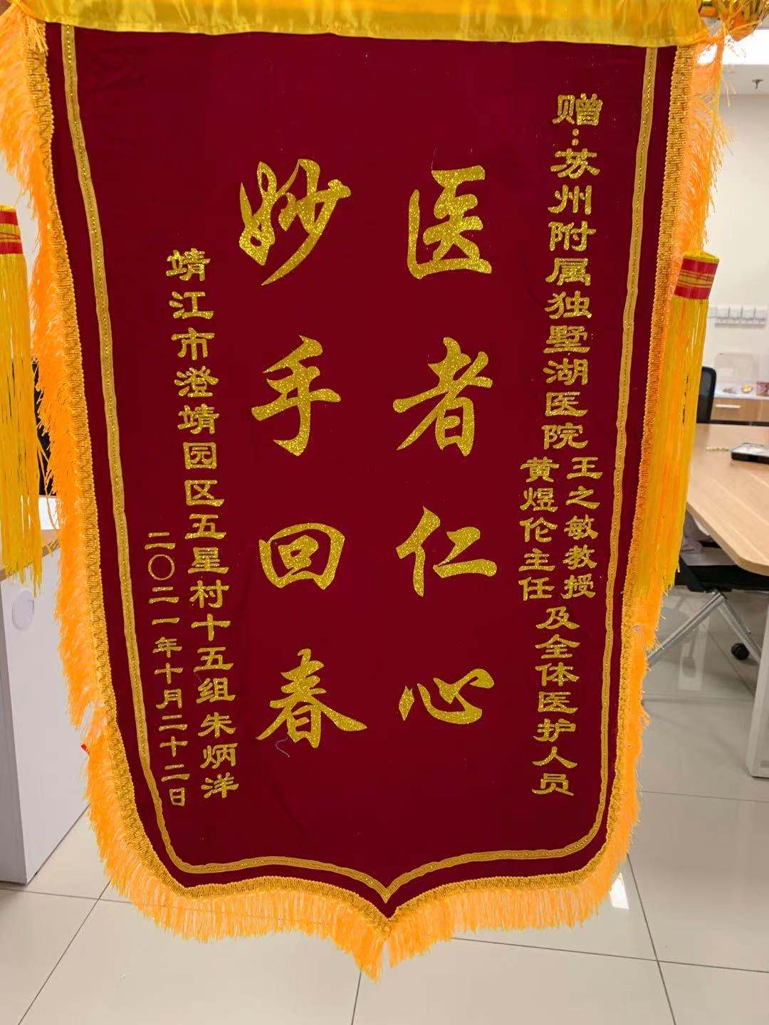 患者朱先生赠送锦旗感谢我院神经外科黄煜伦主任、王之敏教授及全体医护人员