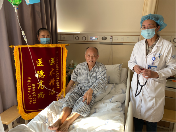 患者高先生及家属赠送锦旗感谢我院呼吸与危重症医学科蒋军红主任