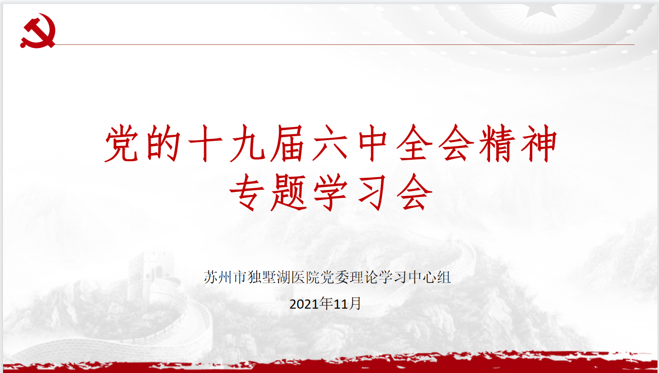侯建全书记在领学时强调,党的十九届六中全会是在我们党百年华诞的重要时刻、在“两个一百年”奋斗目标历史交汇关键节点上召开的一次重要会议。全院上下要将学习贯彻全会精神作为当前一项重要的政治任务,将全会精神与当前工作实际相结合,一以贯之履行好党和人民赋予的责任,坚持以人民为中心的发展思想,扛牢治病救人的重要使命,全力以赴办好人民满意的医疗。