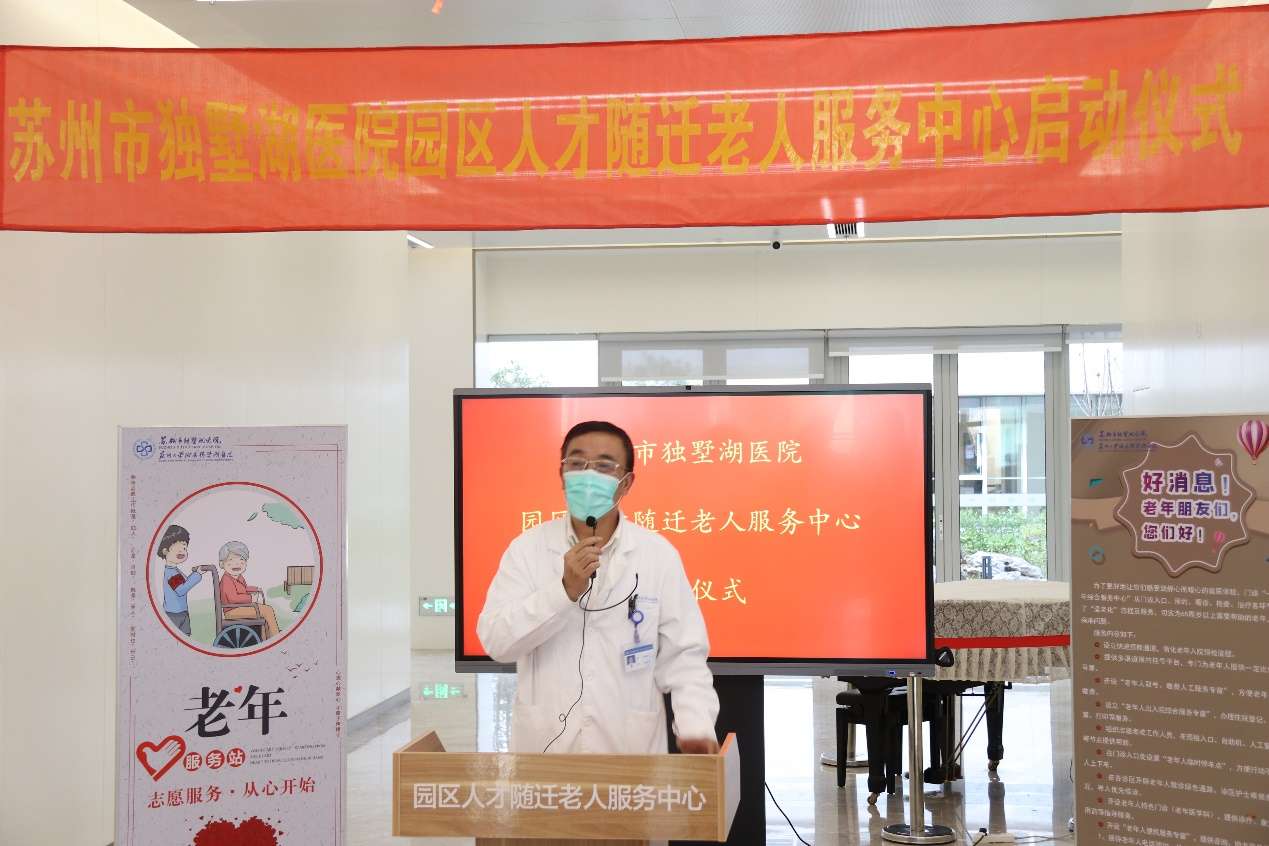侯建全院长宣布“苏州市独墅湖医院园区人才随迁老人服务中心”正式启动。