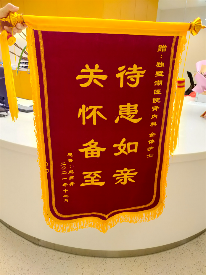 患者赵女士赠送锦旗感谢我院肾内科护理团队