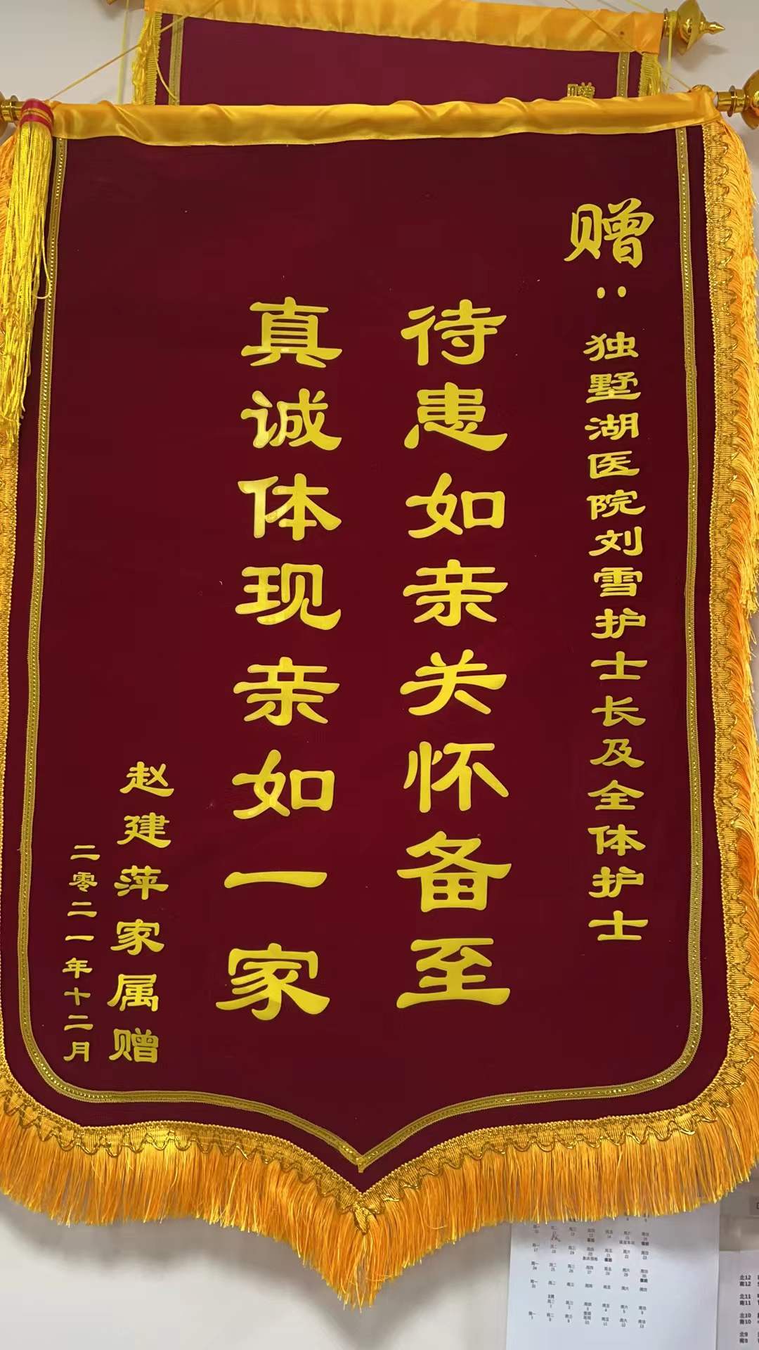 患者赵女士赠送锦旗感谢我院刘雪护士长及全体医护