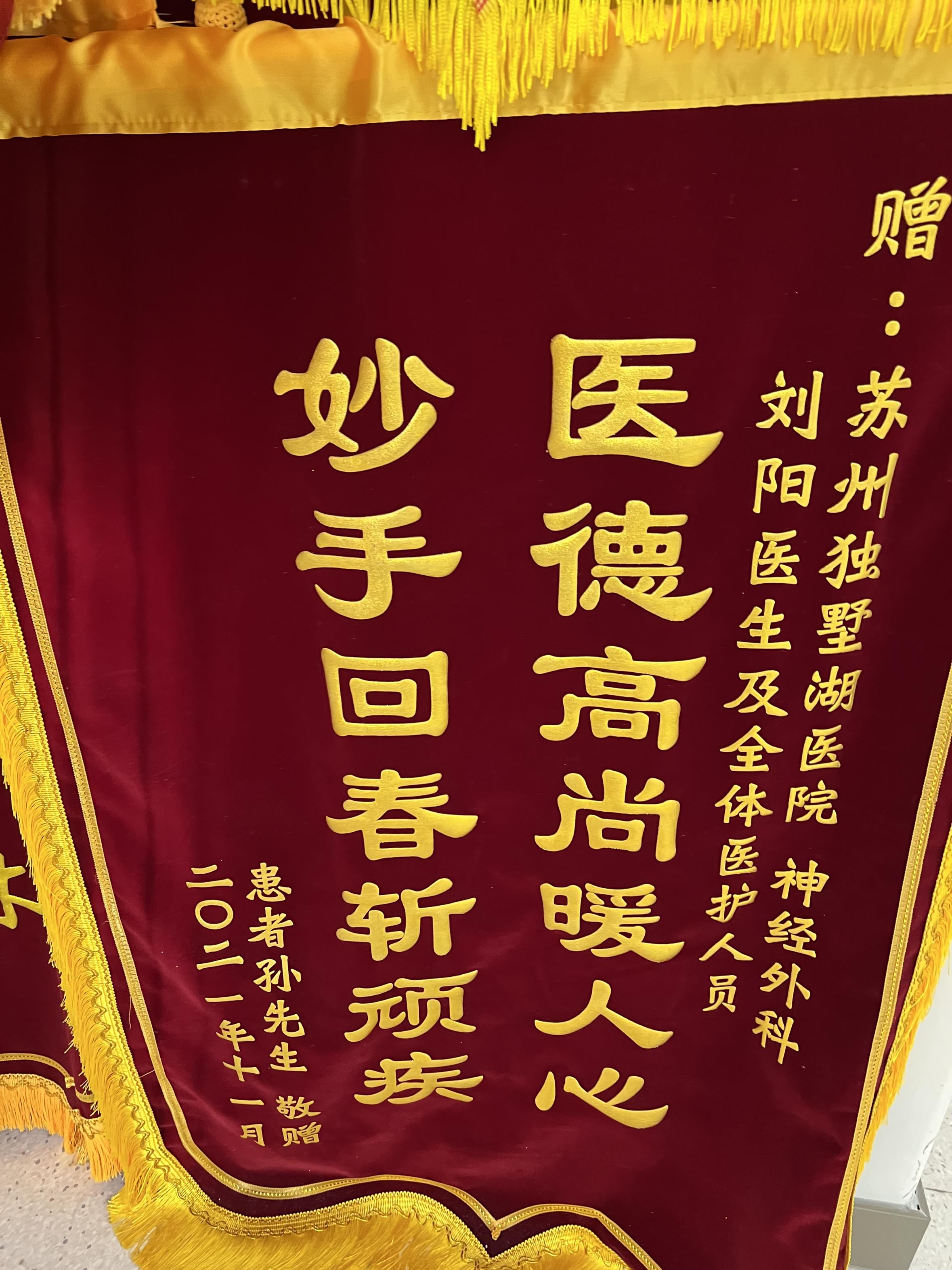 患者孙先生赠送锦旗感谢我院神经外科刘阳医生及全体医护人员