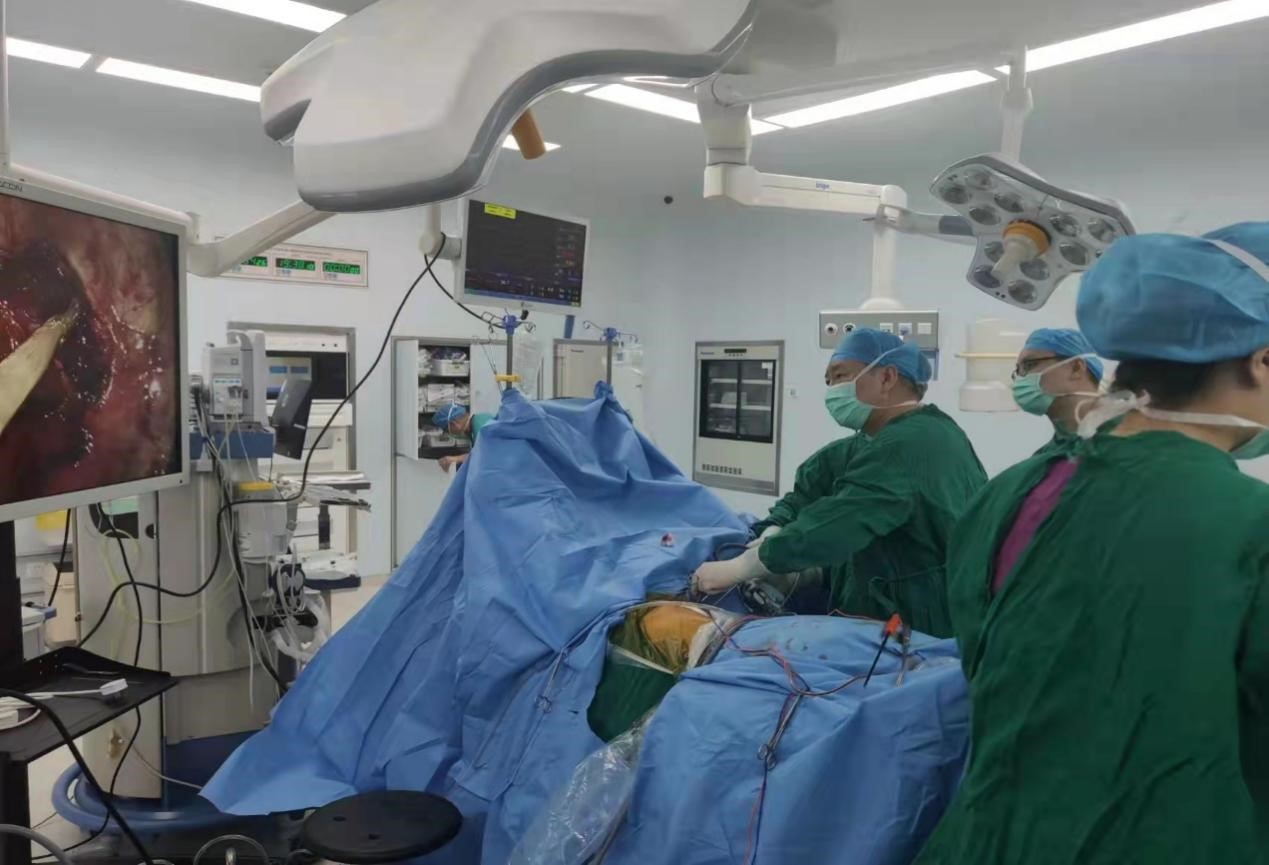 麻醉成功后,患者取左侧卧位,先由神经外科王之敏主任带组取背部正中直切口,将椎管侧肿瘤充分游离后推向胸腔内,解决了可能引起的出血问题,为接下来的胸腔镜手术解决了后顾之忧。随后胸心大血管外科马海涛主任连同助手行胸腔镜下完整切除肿瘤,并可见肿瘤经椎间孔生出,将肿瘤经椎间孔完整牵出,无活动性出血。术后恢复顺利,因采用微创手术治疗,患者术后快速康复出院。