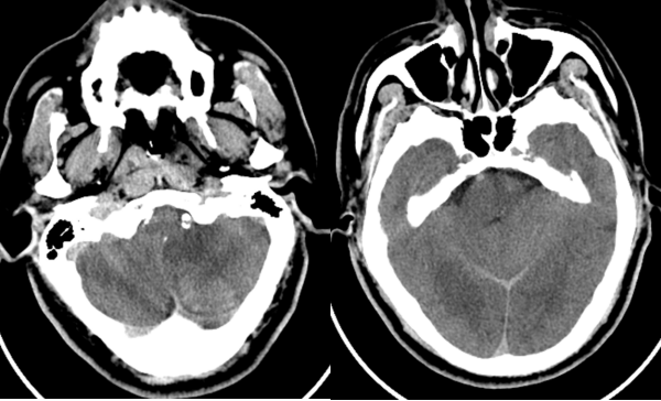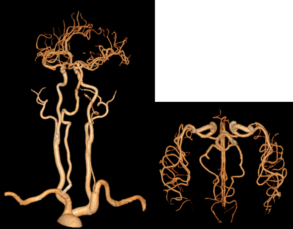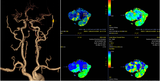 六十多岁的朱先生因“头晕19小时意识不清2小时”来到我院急诊,急诊神经科医师接诊后考虑脑血管疾病,立即行头颈部CTA+CTP检查,判断闭塞血管及梗死面积。影像科张卫国主任团体第一时间完成头颈CTA+CTP后处理,结果提示患者左侧椎动脉V1段起始处次全闭塞,右侧椎动脉V4段闭塞;基底动脉闭塞;双侧椎动脉供血区(双侧小脑、脑干、部分颞叶)缺血性灌注异常。