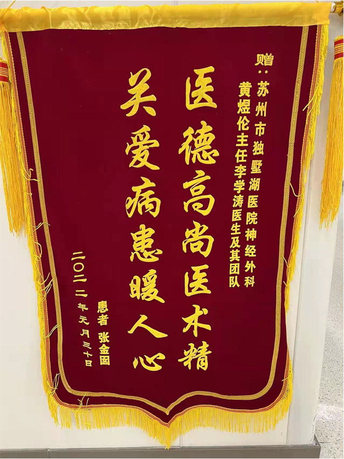 患者张女士赠送锦旗感谢我院神经外科黄煜伦主任、李学涛医生及其团队