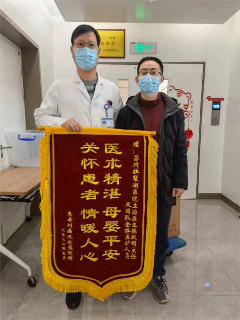 患者刘女士及家属赠送锦旗感谢我院妇产科张跃明主任及全体医护