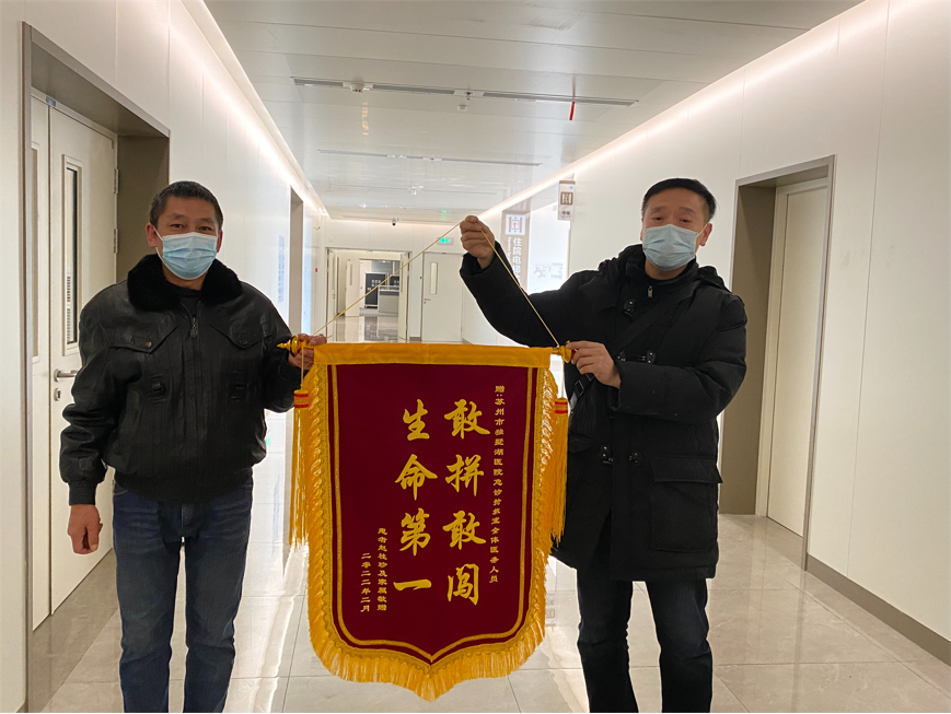 患者赵女士及家属赠送锦旗感谢我院急诊全体医护