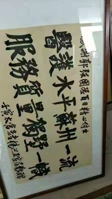 出院后,杨老先生一家人特别感激郭强副院长团队百日的精心付出,挥墨一幅,给予了“医护水平苏州一流,服务质量独墅一帜”的评价致敬团队。家属和病人的信任是我们前进的动力,值此疫情防控要紧关头,我们必将砥砺前行,为大家的健康继续保驾护航。