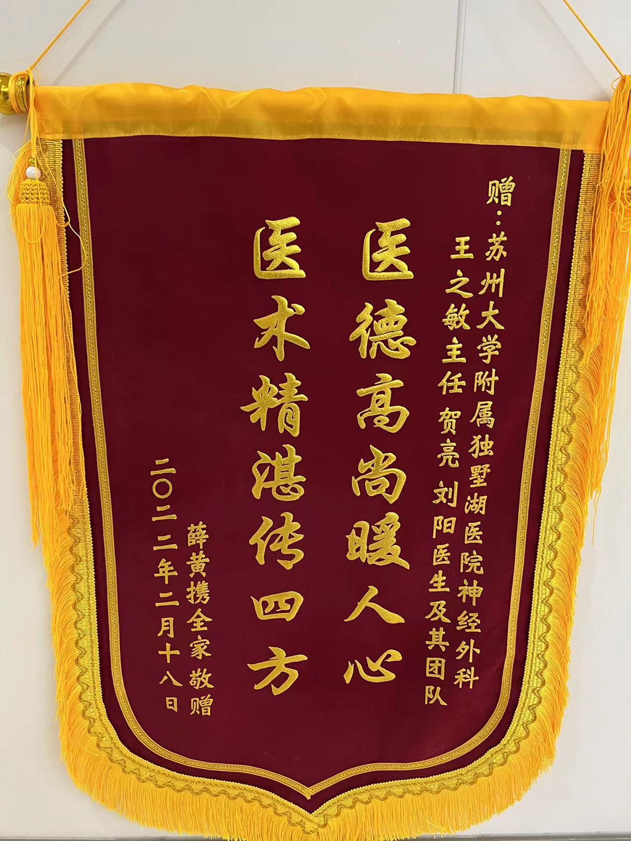 患者薛先生赠送锦旗感谢我院神经外科王之敏主任医师、贺亮、刘阳医生及其团队