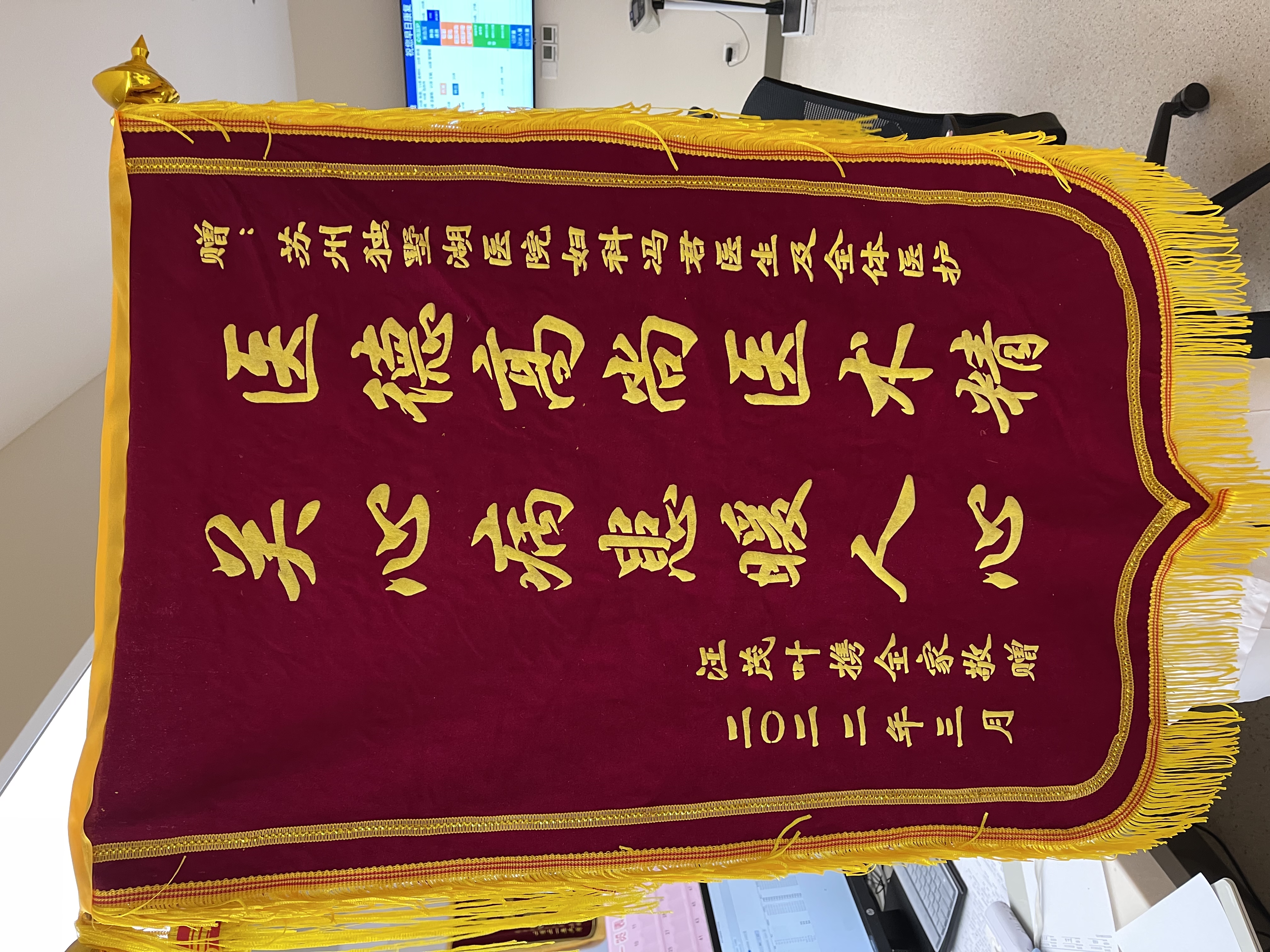 患者汪女士赠送锦旗感谢我院妇产科冯君医生及全体医护人员